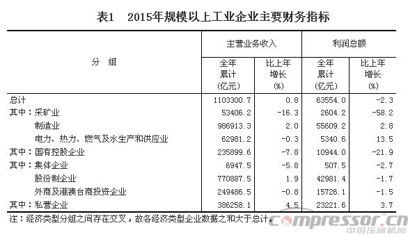 2015年全国规模以上工业企业利润总额比上年下降